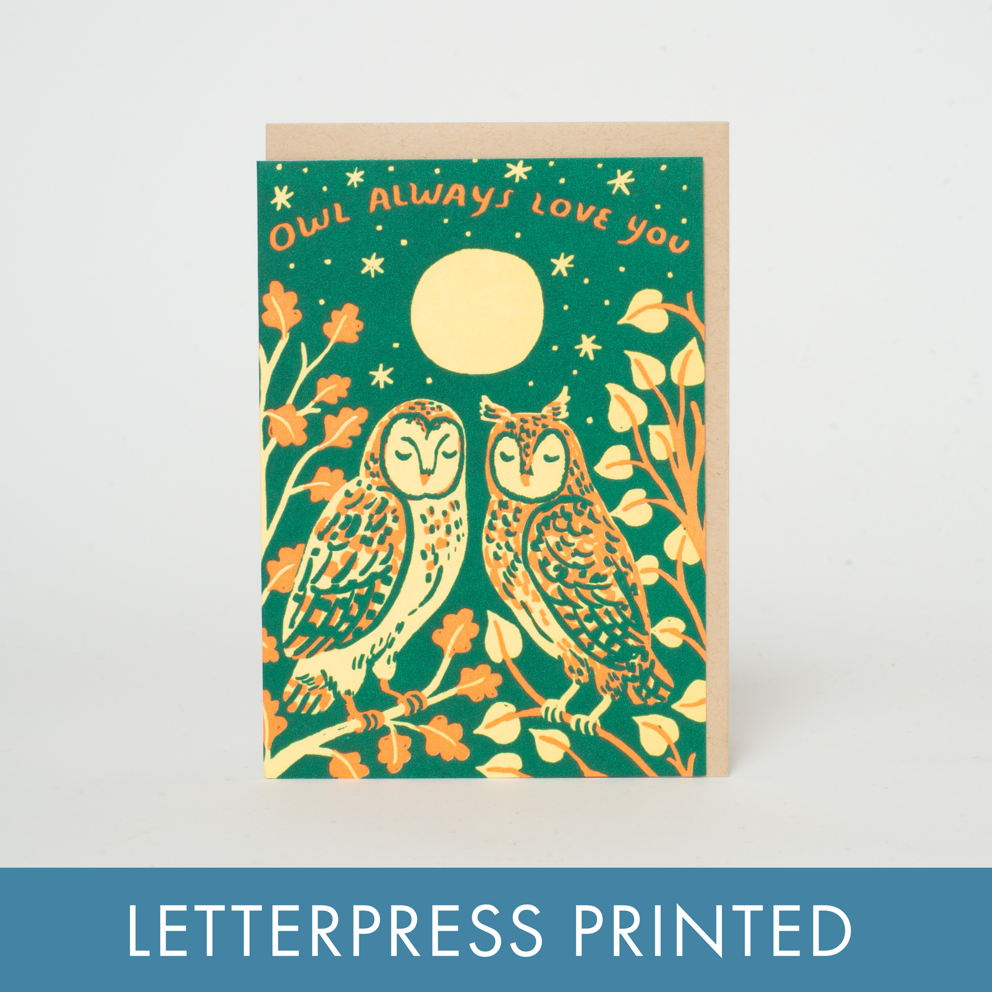 Egg Press Manufacturing - Owl Love Mini Letterpress Greeting Card by Phoebe Wahl